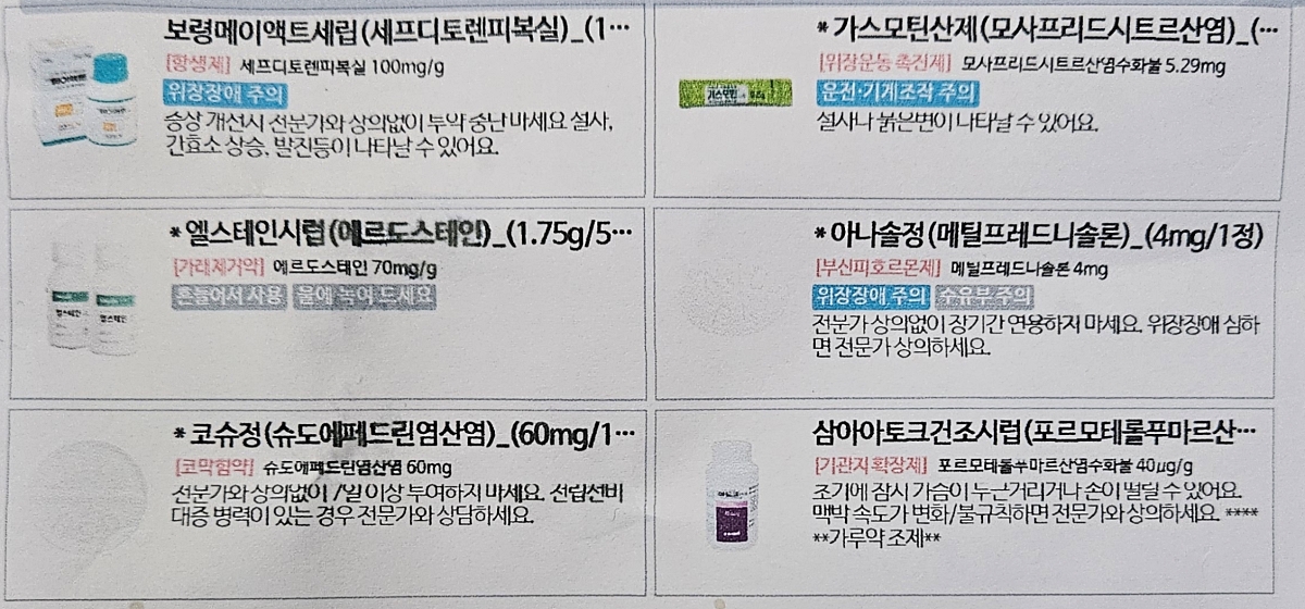 저희 아이가 처방받은 약들을 하나씩 확인해봤어요. 혹시 같은 약을 복용 중인 부모님이라면 참고해보세요.