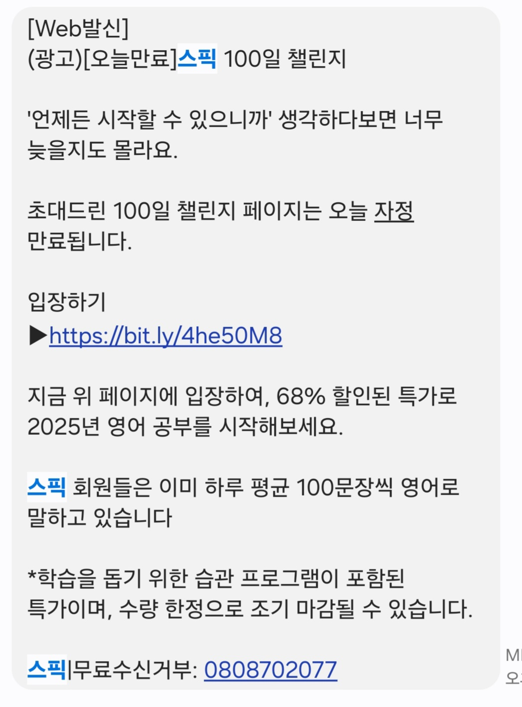 스픽은 광고 문자를 종종 보내는데요, 명절 때 혹은 특별한 이벤트가 있는 경우 한번씩 크게 할인 행사를 합니다.